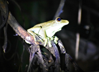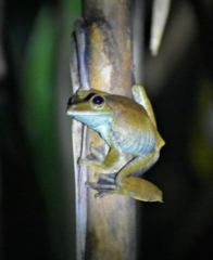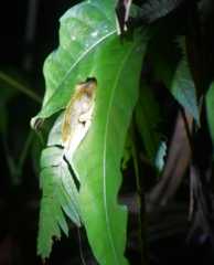 On the way back, we were admiring the stars and looking for more toads when the skies opened and water poured out. Moments before, Arturo had called his taxi buddy to pick us up, but the signal was weak and they hadn’t actually spoken. So we were walking as quickly as we could in the pouring rain, hoping the taxi driver had gotten the message and would find us along the way. We were both wearing raincoats, but it was raining so hard they were soaked through, and water was running down our pants into the rubber boots we had borrowed. The taxi driver did find us half way back to the house and drove us the rest of the way, however we have never been so wet in our clothes in our lives. We couldn’t hang our clothes up to dry because we had been warned about these moths that like the taste of sweat and lay eggs in your clothes if you hang them up at night. The larvae then burrow into you when you put the clothes on and two weeks later you have worms crawling around in your skin. That sounded frightening enough that we just left our clothes in the tent, where they definitely did not dry