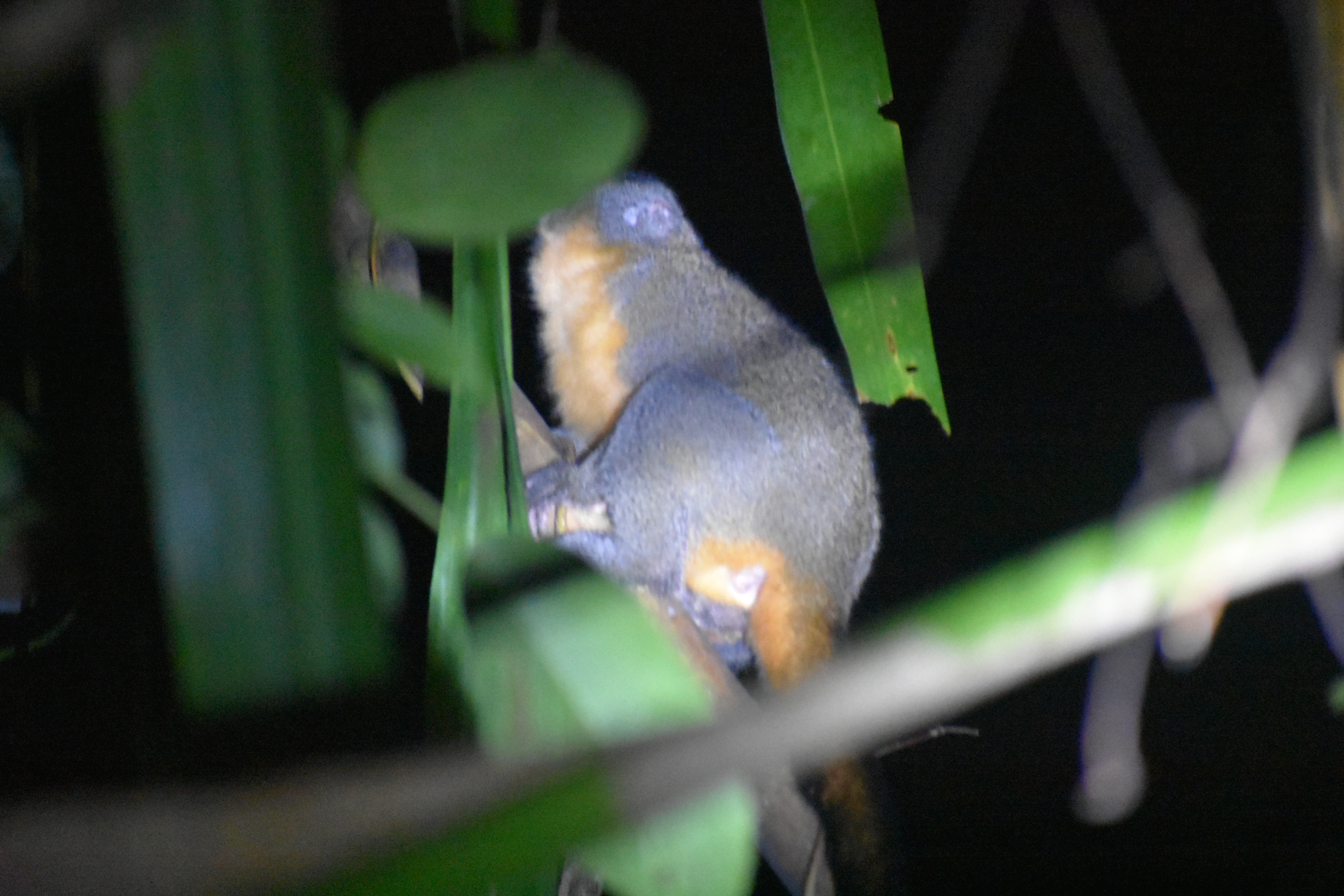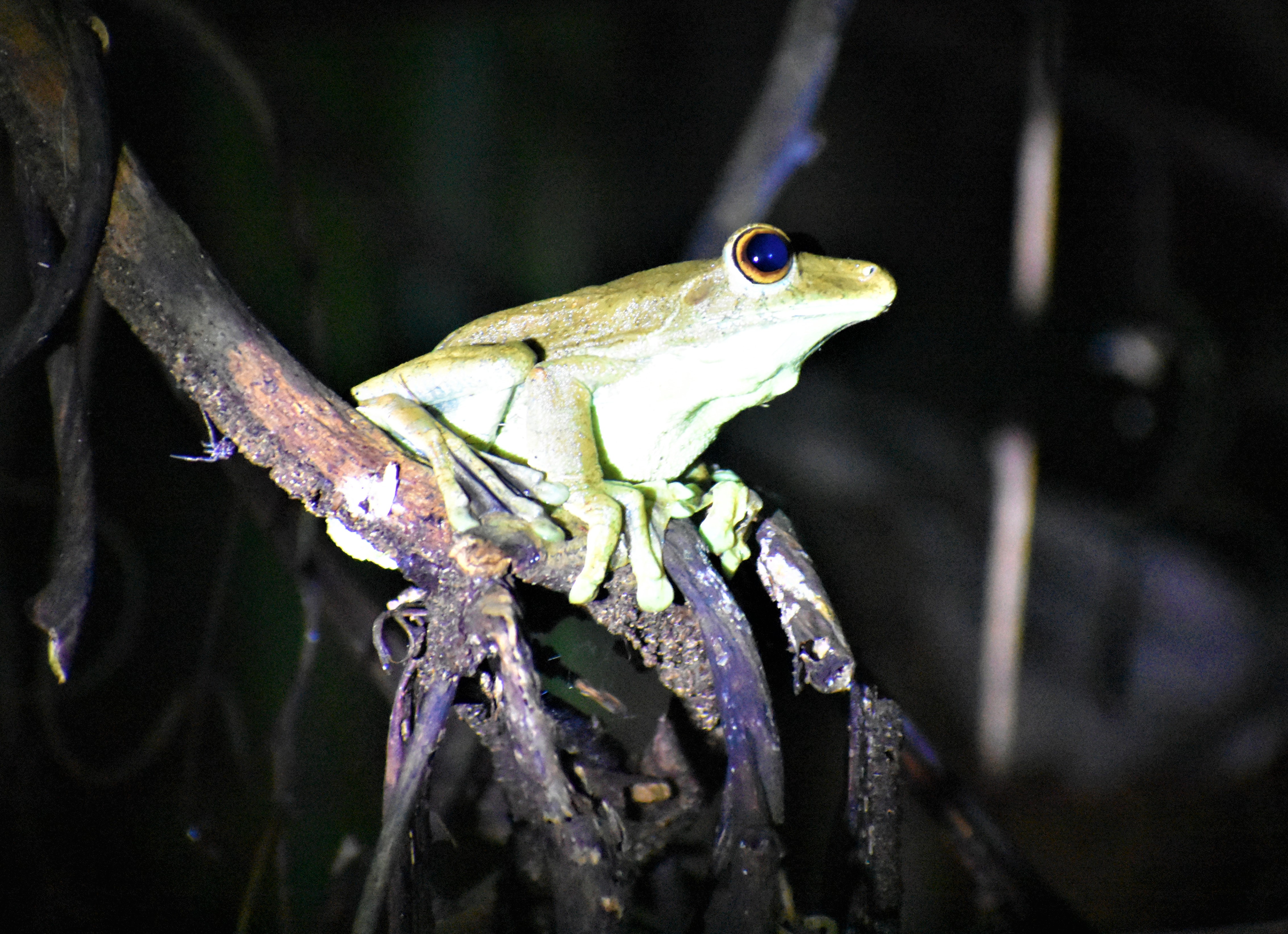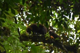 We arrived at camp in time for dinner and then our second night hike. The highlight of this night hike was the Night Monkey sighting. Night Monkeys are the only nocturnal monkeys, so it’s fairly uncommon to see them. They were jumping from tree to tree and seemed to be pretty camera shy, so we struggled to get a good shot, but they were so fun to watch. We also saw tons of frogs, many butterflies, and a large wolf spider.