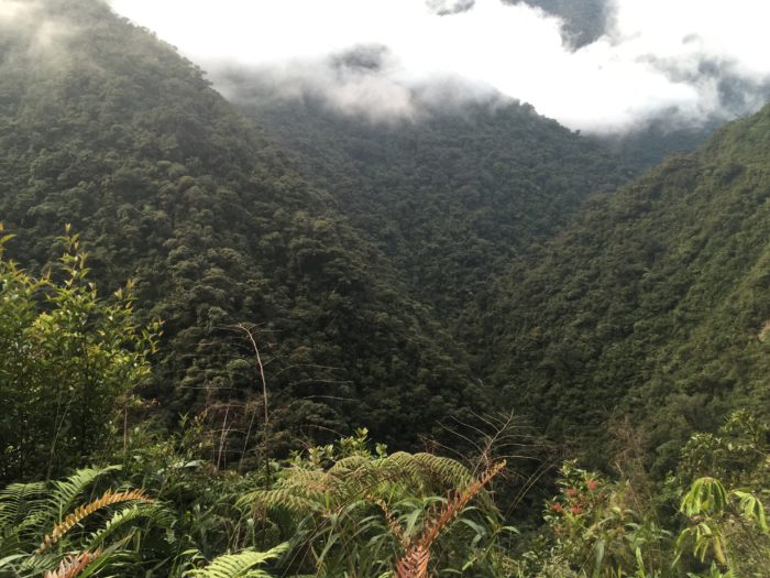 With that settled, we got on the minibus to Salvación and began the long journey. To get to Salvación, there is an elevation change of 3,000 meters (9,840 feet), which means the roads are rather terrifying, curvy cliff roads that have been eroded by waterfalls in some places, but with stunning views at every turn. There are thousand meter tall hills of trees for many hours. Just as Jess was thinking it was lucky there weren’t many vehicles coming in the opposite direction, we narrowly avoided a head-on collision. It is not that easy to get to the rainforest, and this is on the new, improved road. To make the adventure that much more exciting, our bus had two flat tires on the way to Salvación, which the bus driver noticed immediately and changed each time without missing a beat, and a stripped axle on the way back from Salvación, which required a trip to the mechanic and ultimately a new bus. Eighteen hours of windy bus ride meant Jess had plenty of time to stare out the window, and she’s learned you can see a lot of interesting things out there. Her favorite moment was catching two six year-old boys sneakily sharing their first cigarette which was both shocking and endearing and an amazing view into life that goes on around us.