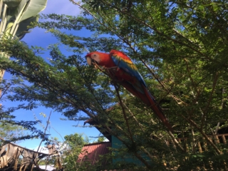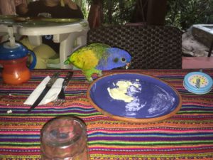 The next morning it was still raining, so we had a leisurely breakfast with the parrots Oliver and Carolina rescue take care of until they can be released into the wild.