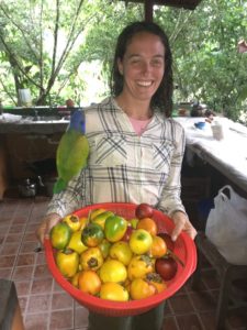 While we were waiting for the rain to stop, we helped make cocona marmalade by peeling and de-seeding a huge bowl of them, with a parrot’s help.