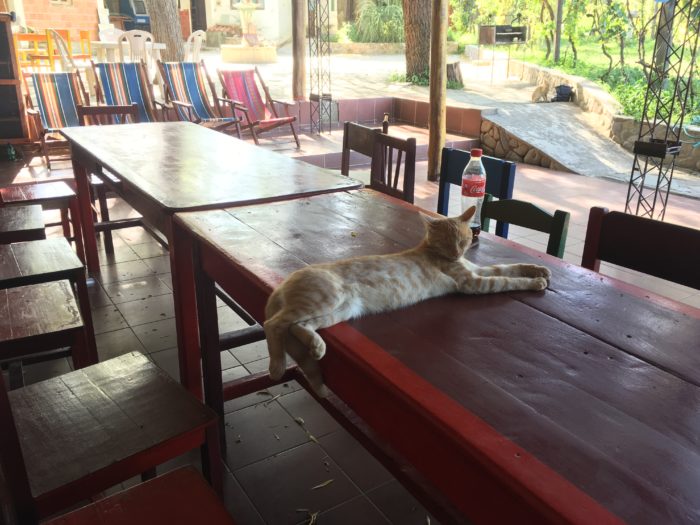 The winery was full of cats. We saw at least seven of them while we were there. They would usually make a huge mess of the garbage which for some reason was often left out at night. Sometimes they would play catch with a large beetle or fight with each other, but mostly they just hung out at the winery. Jess liked to give them names. There was Sneaky (our favorite and very aptly named. We once caught her standing on her hind legs reaching for a glass from the glass cabinet), Molé (a cat with a small black mark by her nose), Not Mole (a similar looking cat without a mark), Grinch (a cat who always seemed to be fighting), Look Alike (a cat who looked like Sneaky but was scrawnier and less sneaky), Snuggles/Curiosity (the cat who spent the most time in the fermentation room and seemed to always want to be close). Towards the end of our stay, we learned most of the cats don’t belong at the winery and they were causing a lot of trouble, so Carlos and Adelpha rounded up Molé, Not Mole and Look Alike, put them together in a potato sack, and drove off to some destination 40 minutes away where they dropped off the cats. We had enjoyed having the cats around and watching their antics, so we were sad to see them go.