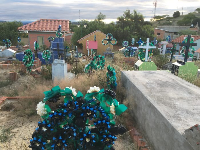 Leia and Angela from the bus del Infierno came to the winery to visit us. This is the second time we have met up with them since we were in Salta, Argentina together. They came and saw us working on Wednesday morning, we gave them the tour complete with museum and Tunnel of Love and then went out to explore Valle de la Concepción. We visited the cemetery which is colorfully decorated according to the age of the person who died. We went to Casa Vieja, the oldest winery in the valley, and shared a pitcher of wine. We showed them our local shops as we bought groceries to cook together, and then we went back to the winery and played Tichu. Leia and Jess were victorious. It is so fun to have friends on the road who keep reappearing, especially ones we have taught Tichu.