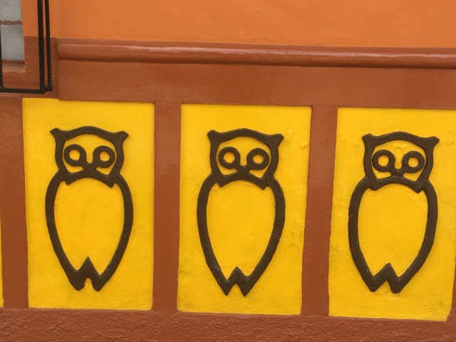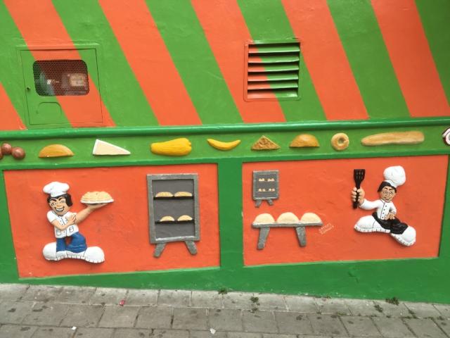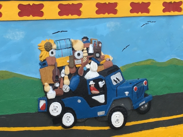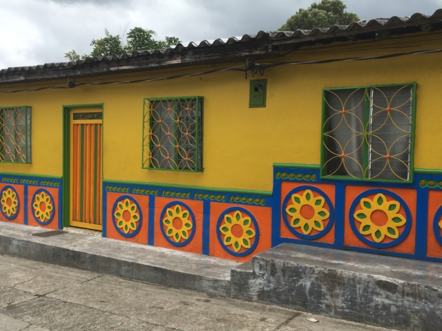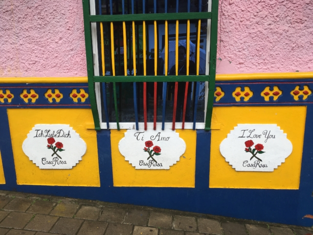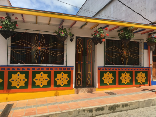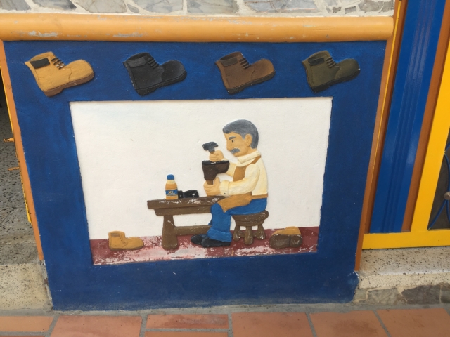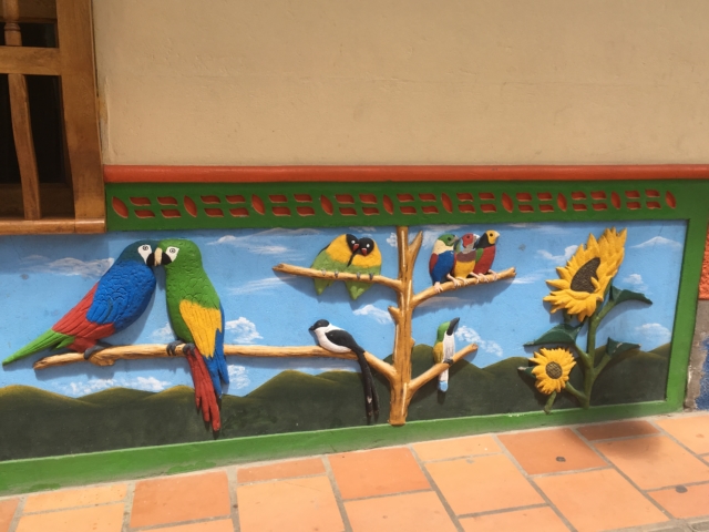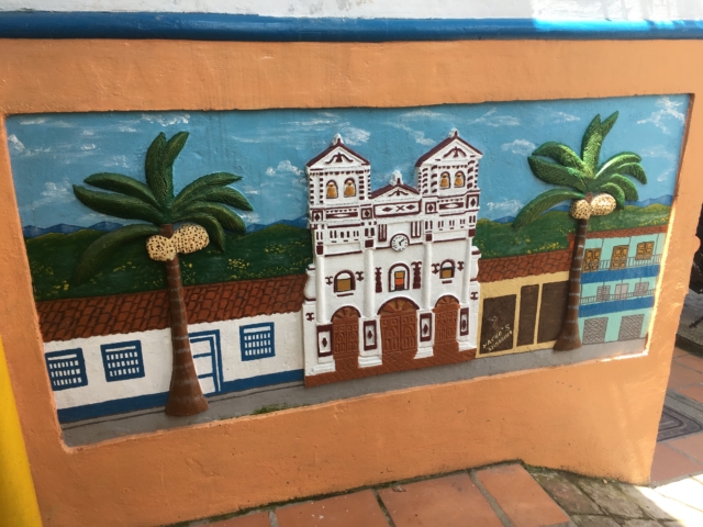We spent the rest of our time in Guatapé exploring the small town and admiring the zócalos which adorn each of the buildings in the town. The town is wonderfully colorful with each house and building having a different colored facade. At the base of each building is a one-to-two-foot section with a clay mural depicting a scene from the region’s culture, history, the family’s feelings, memories or aspirations, or the profession of the person occupying the building. Some of the murals are phenomenally detailed while others are more simple representations. One street in Guatapé is called Calle del Recuerdo (Street of Memory) and displays some old zócalos that were carefully removed and transplanted here before half of the city was flooded by the dam.